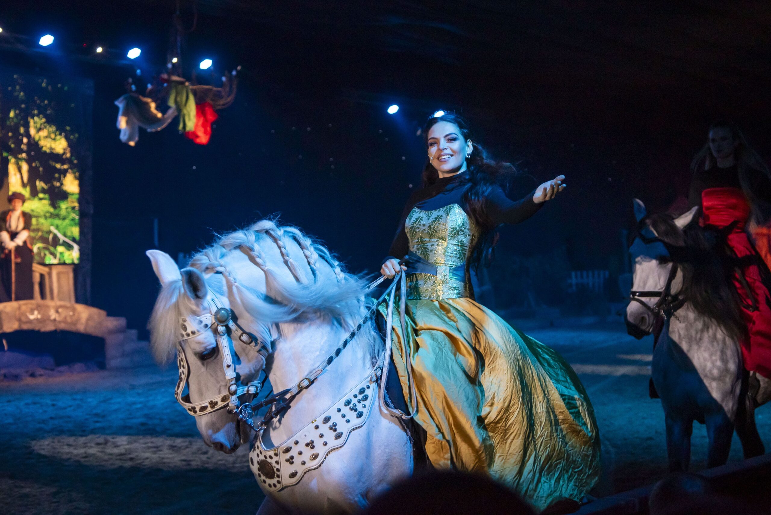 továbbá közreműködnek a Nemzeti Lovas Színház lovasai és lovai.